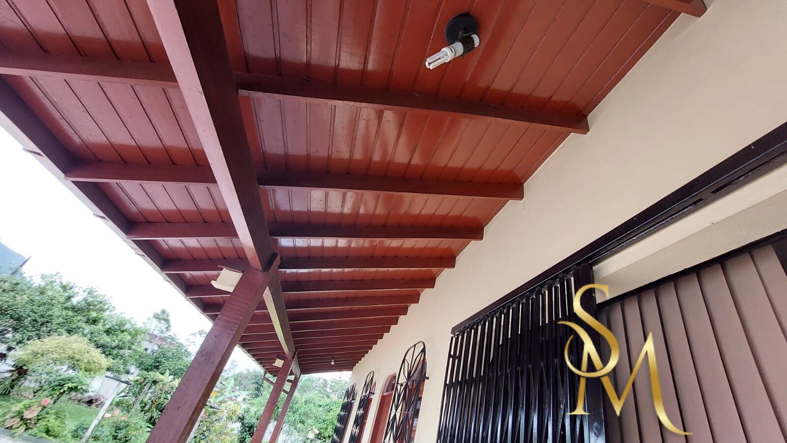 Na parte de traz da casa há uma varanda e uma área de serviço com dispensa.